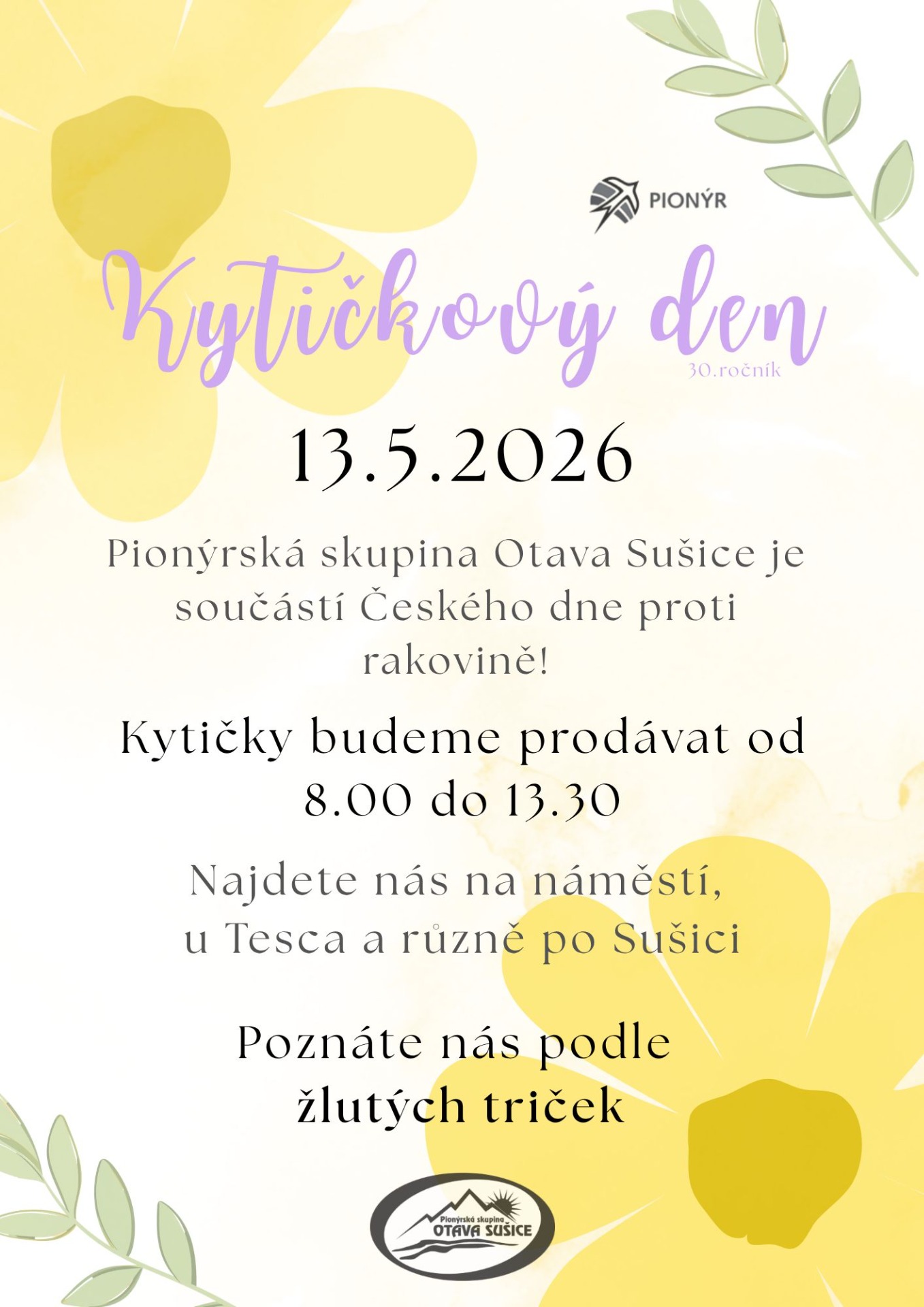 Pionýrská skupina Otava Sušice bude znovu součástí Českého dne proti rakovině!